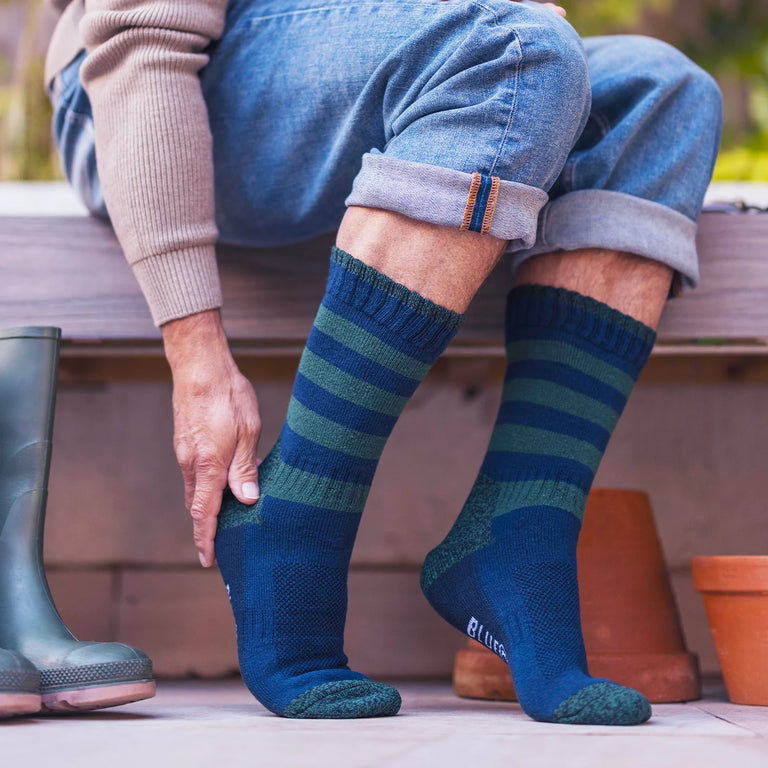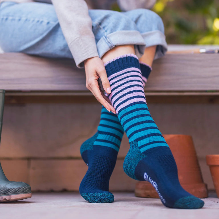 The longer length socks pair perfectly with wellington boots, while the crew length is ideal for outdoor boots. We added a bold stripe for a vibrant touch of colour.